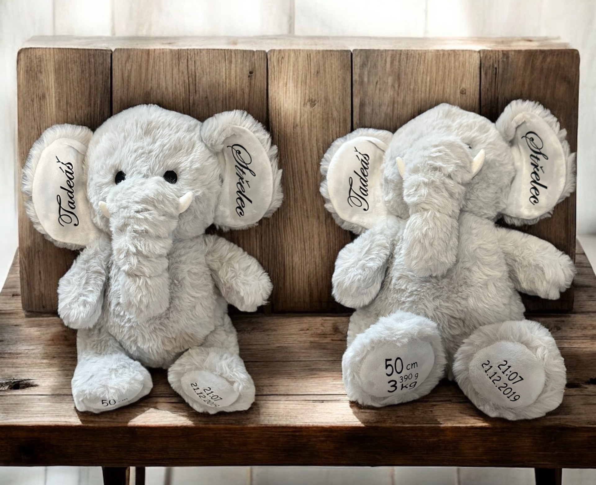 Údaje které chcete na slona vyrobit, zadejte prosím v posledním kroku objednávky " potvrzení objednávky" do kolonky poznámka k objednávce.